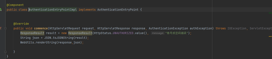 如果是认证过程中出现的异常会被封装成AuthenticationException然后调用AuthenticationEntryPoint对象的方法去进行异常处理。