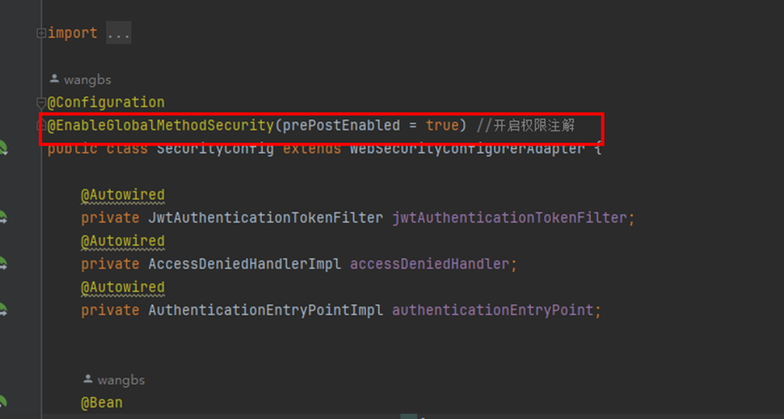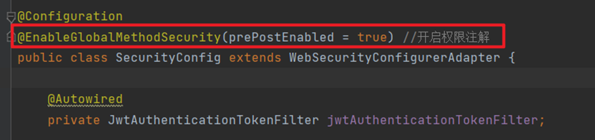 开启配置需要再在SpringSecurity的配置类中增加如下注解: