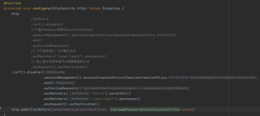 - 对于登录的login接口应实现匿名放行,其他接口要拦截,需要认证。