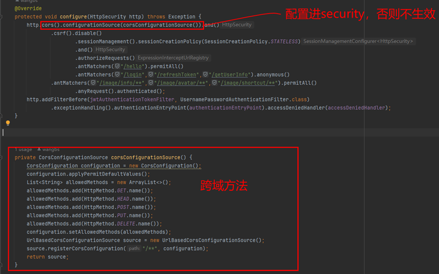 在SpringSecurity项目中配置springboot跨域可能会有问题。