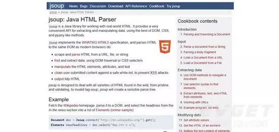 Jsoup是一款Java的HTML解析器,可直接解析某个URL地址、HTML文本内容。它提供了一套非常省力的API,可通过DOM、CSS以及类似于jQuery的操作方法来取出和操作数据。