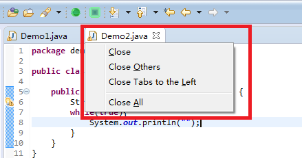 这个时候我想关闭其中一个JAVA文件,可是使用
