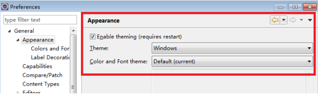 Window–>Preferences–>General–>Appearances