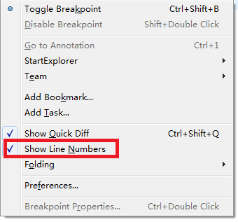 然后使用方向键,选择Show Line Numbers 即可。