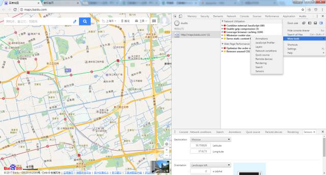 More Tool:包含JS性能分析、页面分层、自定义终端设备UA、模拟传感器等功能。