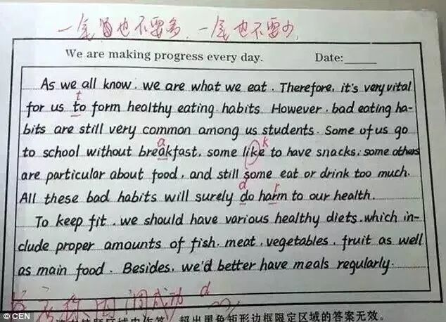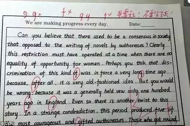 而人家老师对学生作文的批注,也是一个字母一个字母的抠哦。