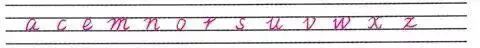 小写字母a,c,e,m,n,o,r,s,u,v,w,x,z要写在中间的一格里,上下抵线,但不要出格。