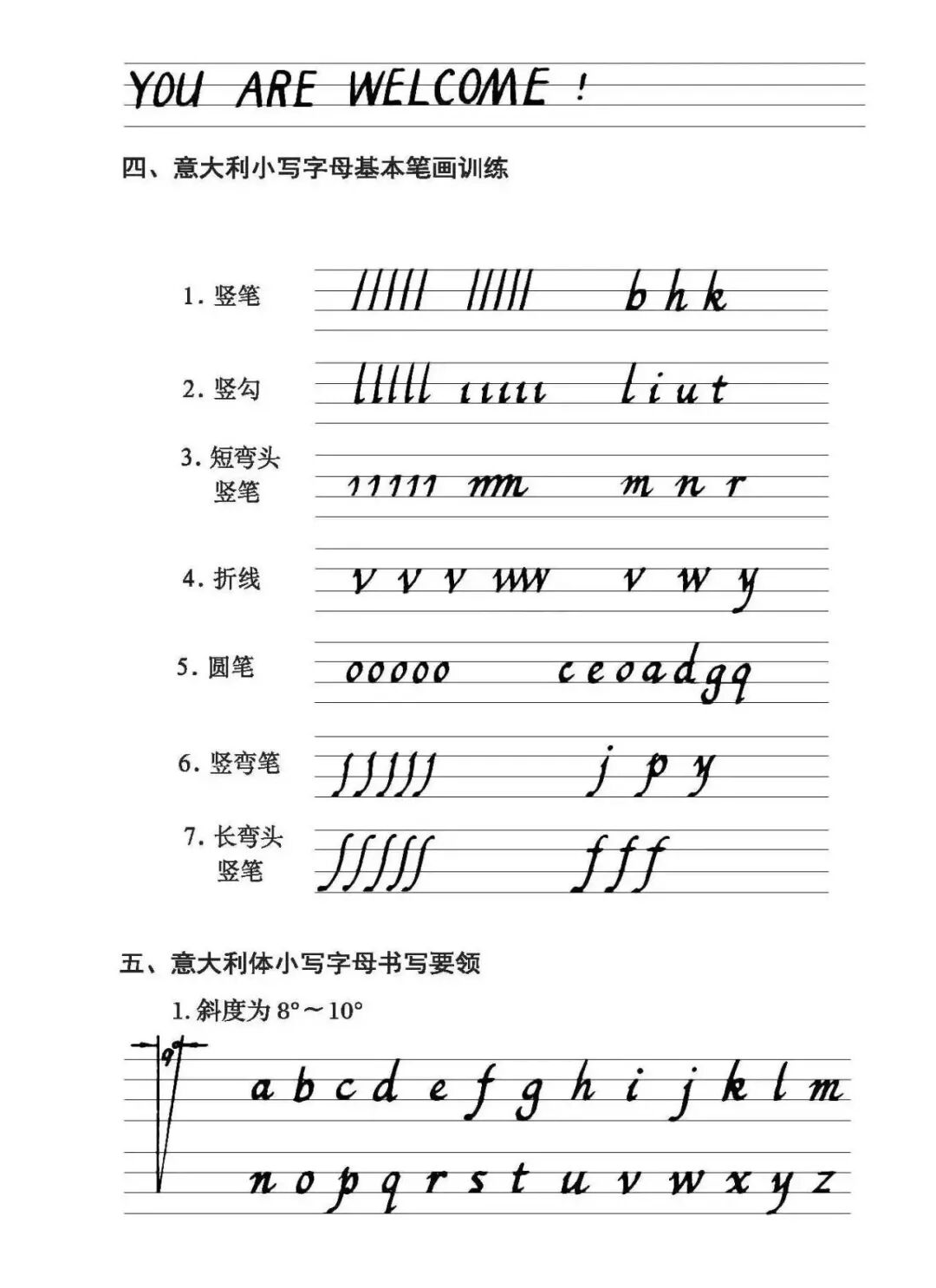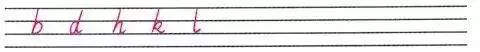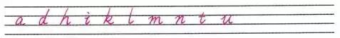 小写字母a,d,h,i,k,l,m,n,t和u,它们的提笔是一个上挑的小圆钩,不能写成锐角。