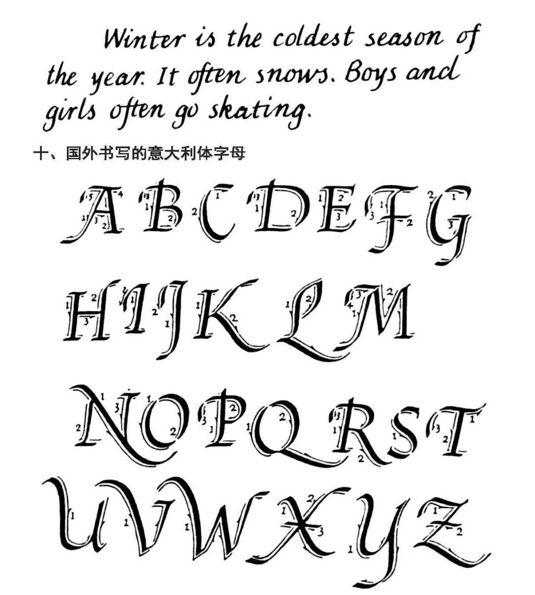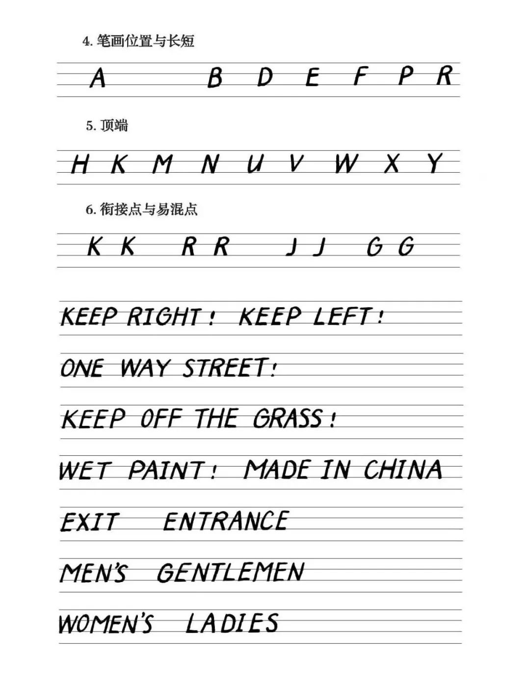 注意:有些字母是需要一笔写完,而有的字母是两笔或三笔完成的