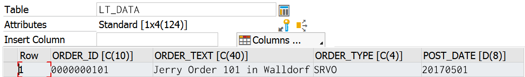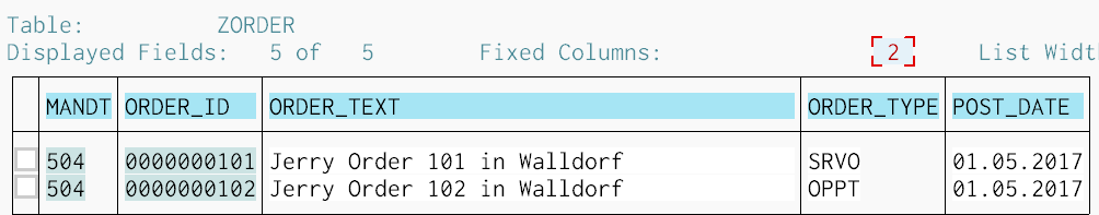 For demonstration purpose I create a very simple database table ZORDER with two entries: