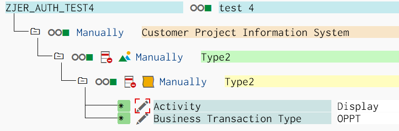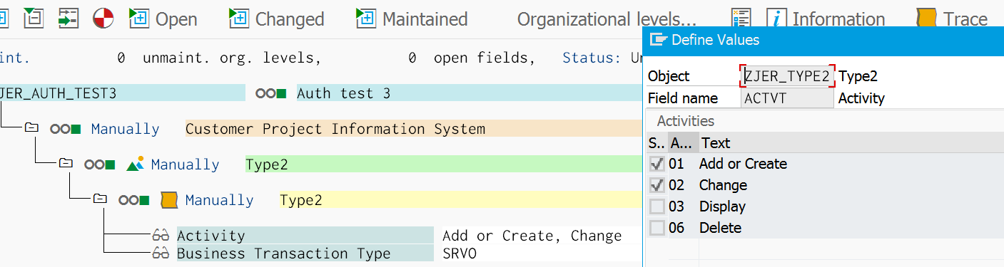 Create a new PFCG role ZJER_AUTH_TEST3 with ACTVT = 01,02 and PR_TYPE = SRVO: