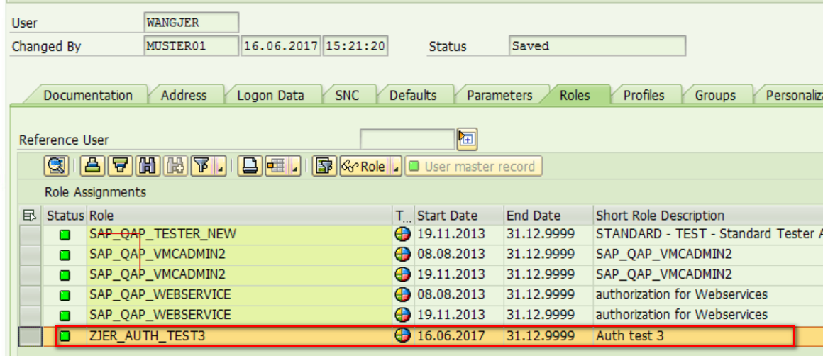 And then assign this PFCG role to my user: