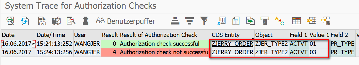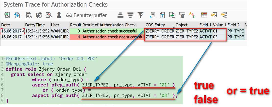 This means from semantic perspective that “it is expected that user WANGJER can only have access to order with process type SRVO“.