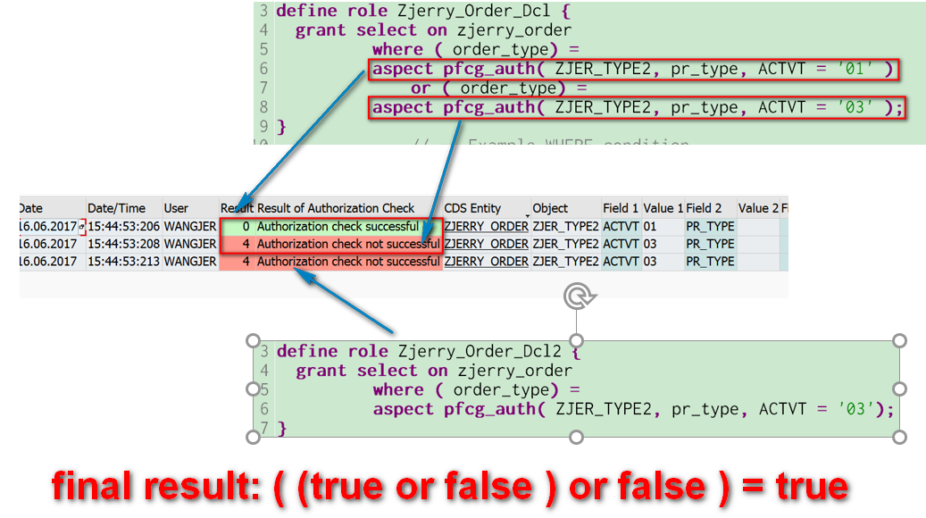 Again the SAP help said “If a CDS entity is specified in multiple CDS roles, the resulting access conditions are joined using a logical OR”.
