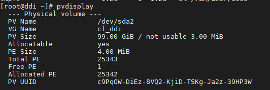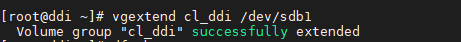 将/dev/sdb1添加到该组中vgextend cl_ddi /dev/sdb1