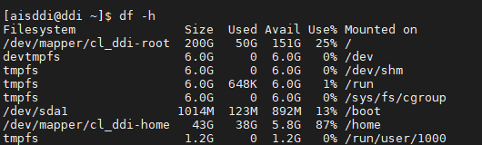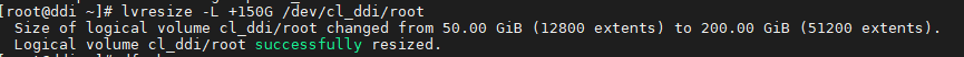 之后就可以对原来的/进行扩容了lvresize -L +150G /dev/cl_ddi/root