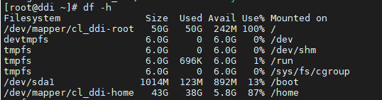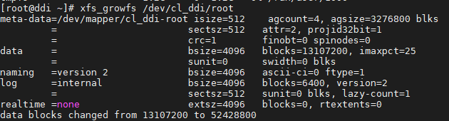 5、扩容之后需要重新读取一下磁盘数据xfs_growfs /dev/cl_ddi/root