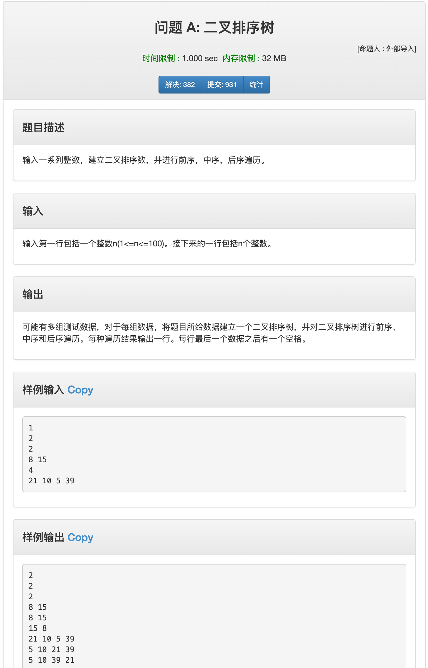 唯一的坑在于“输入中可能有重复元素,但是输出的二叉树遍历序列中重复元素不用输出。”