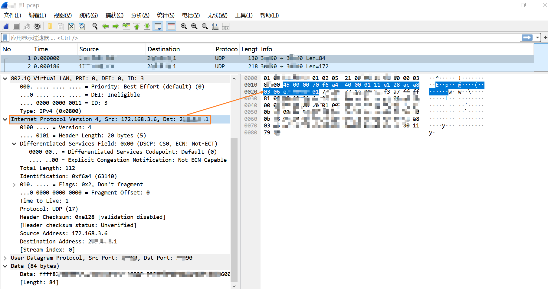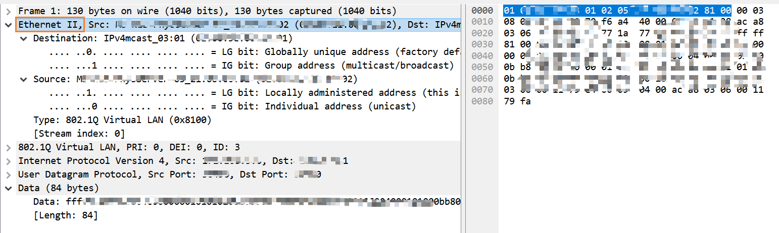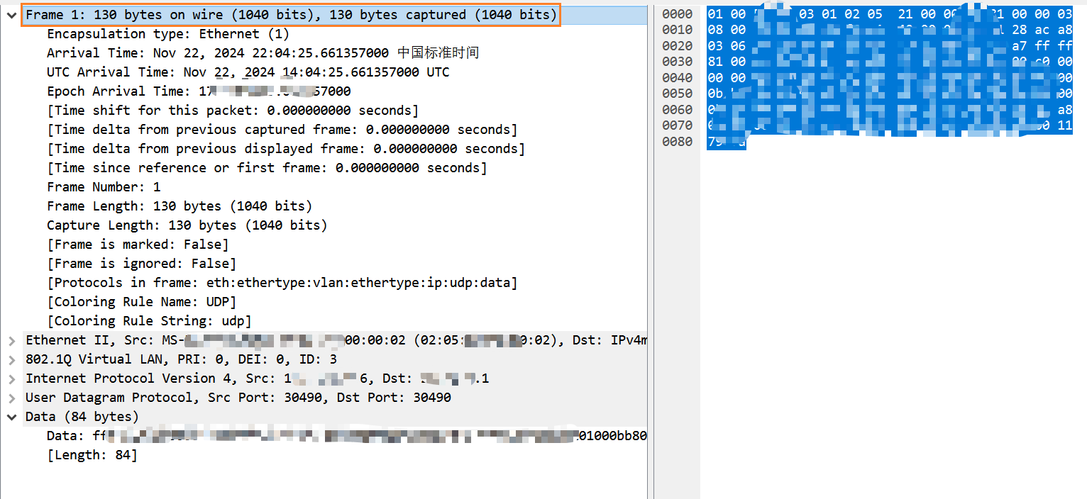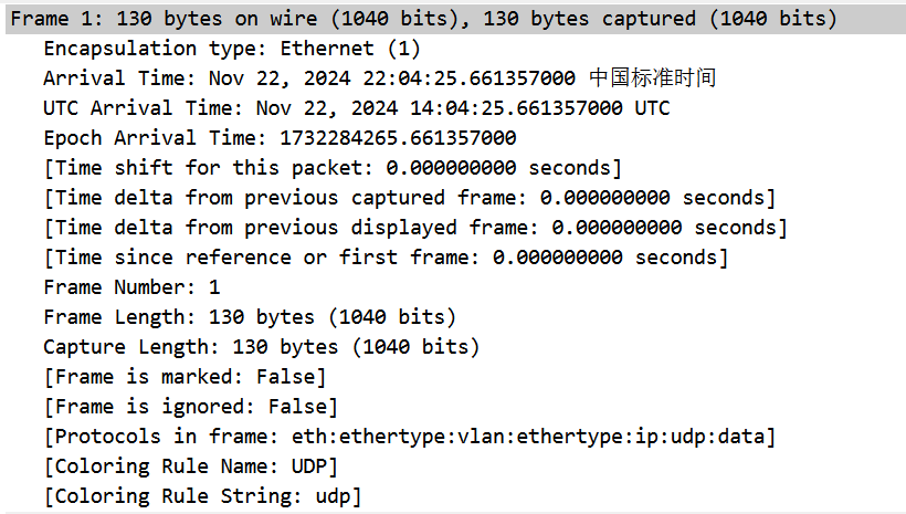 - [Protocol in frame : eth:ethertype:vlan:ethertype:ip:udp:data]