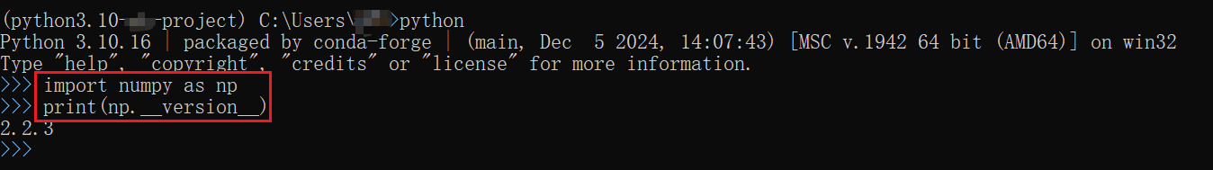 如果使用的是 Anaconda 或 Miniforge(推荐) 环境,可以使用 conda 来安装 NumPy: