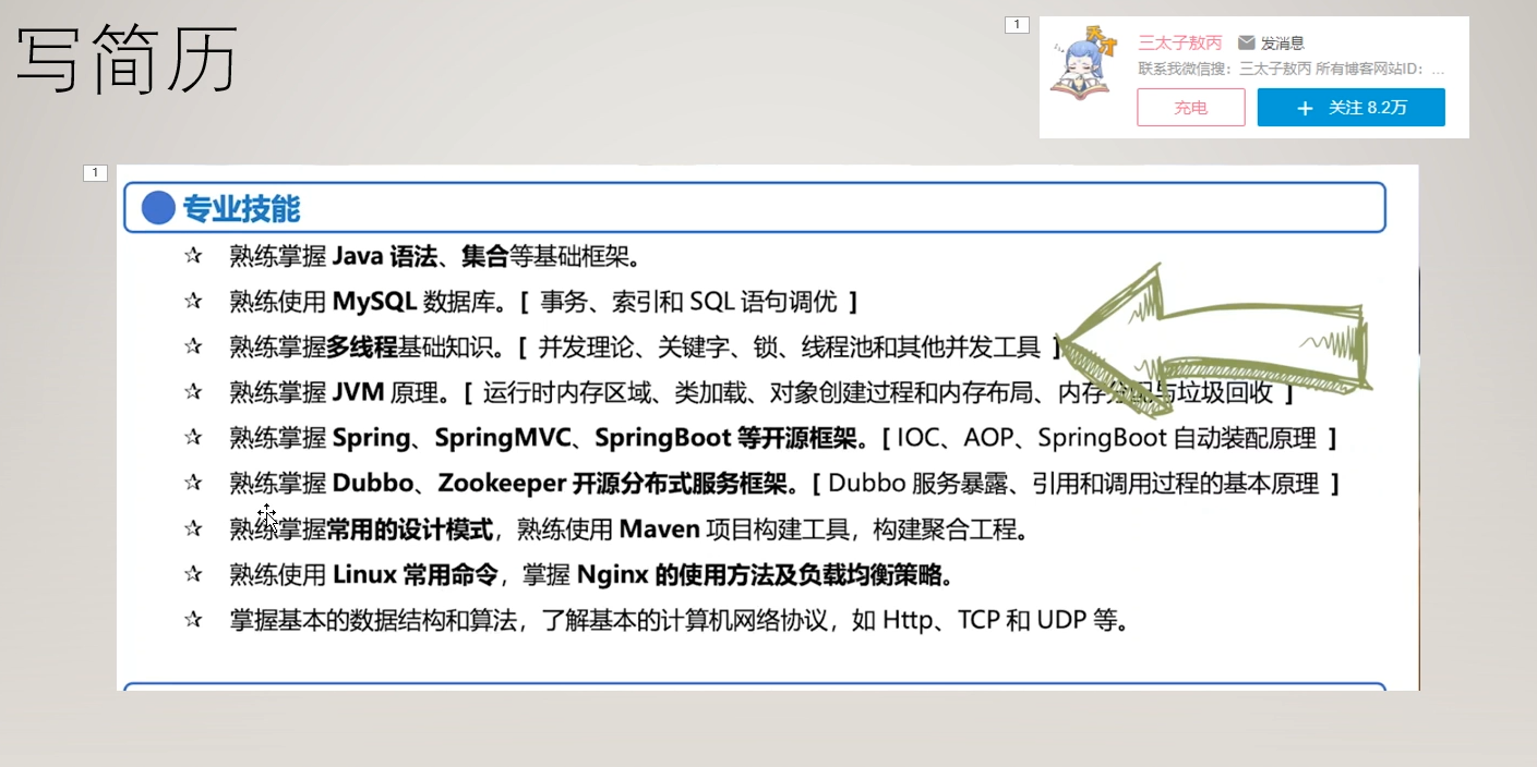 花了一个礼拜时间,把51job、猎聘这些那时候比较有名的招聘网站里面的Java岗位通通看了一遍,把每个岗位描述都写下来,并进行整理和总结,列了一份比较大的提纲,作为自己的学习目标。