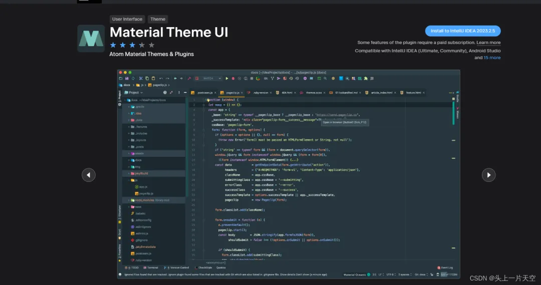 优秀好看的主题插件还有:Rider UI Theme Pack, Material Theme UI 这三个是我用起来配色最好看的三款主题插件