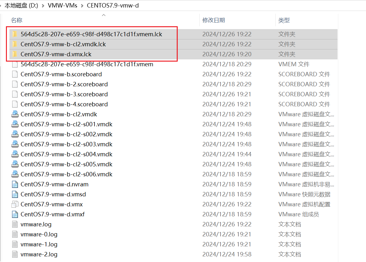 .lck是锁文件,当你打开一个虚拟机时,会产生一个或多个.lck文件夹,这些文件通常位于虚拟机的配置文件或磁盘文件下,这些文件确保了同一时间只有一个实例可以操作或访问虚拟机的文件,防止多个虚拟机实例同时访问文件。- 在多用户的环境下,