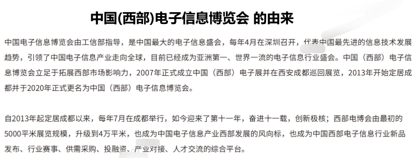 - 2020年始,工业和信息化部正式将软博会交由中国电子信息行业联合会主办。
