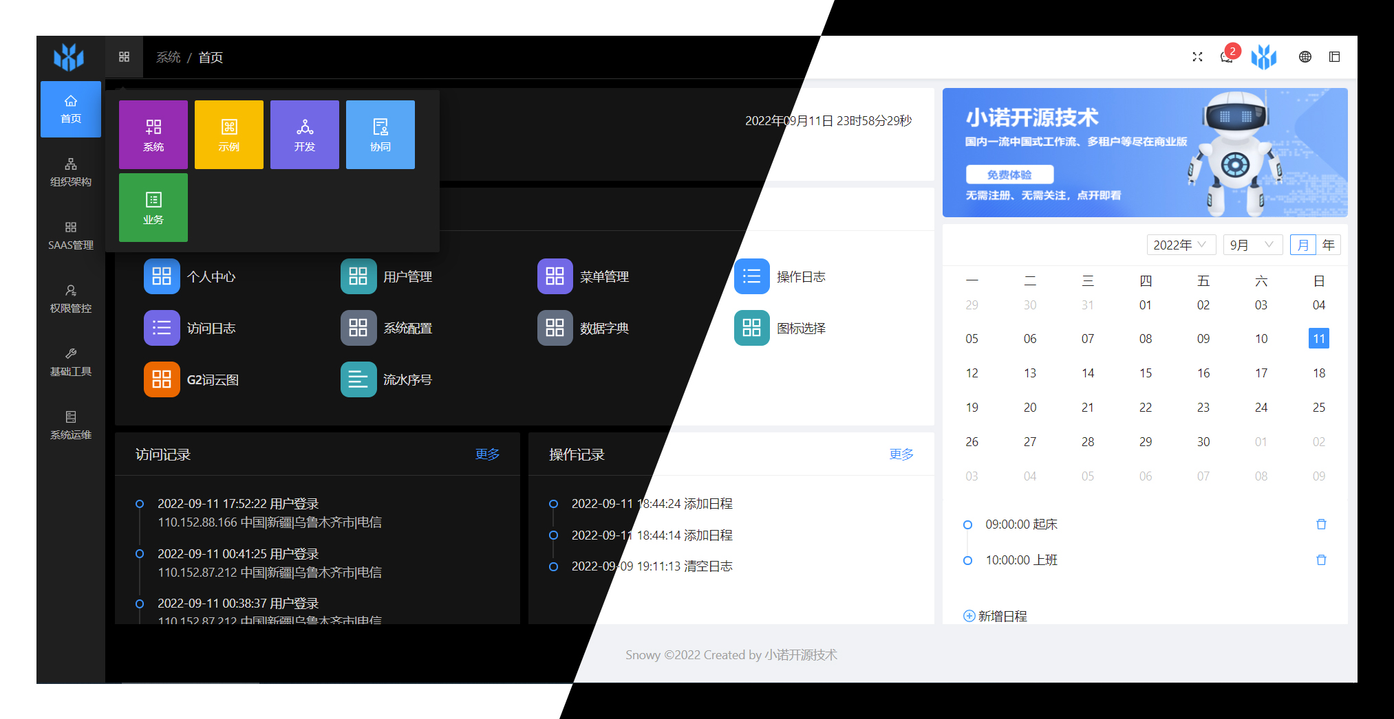 2.2 通用/权限/后台:Snowy/小诺 【推荐(重型)】♥♥♥