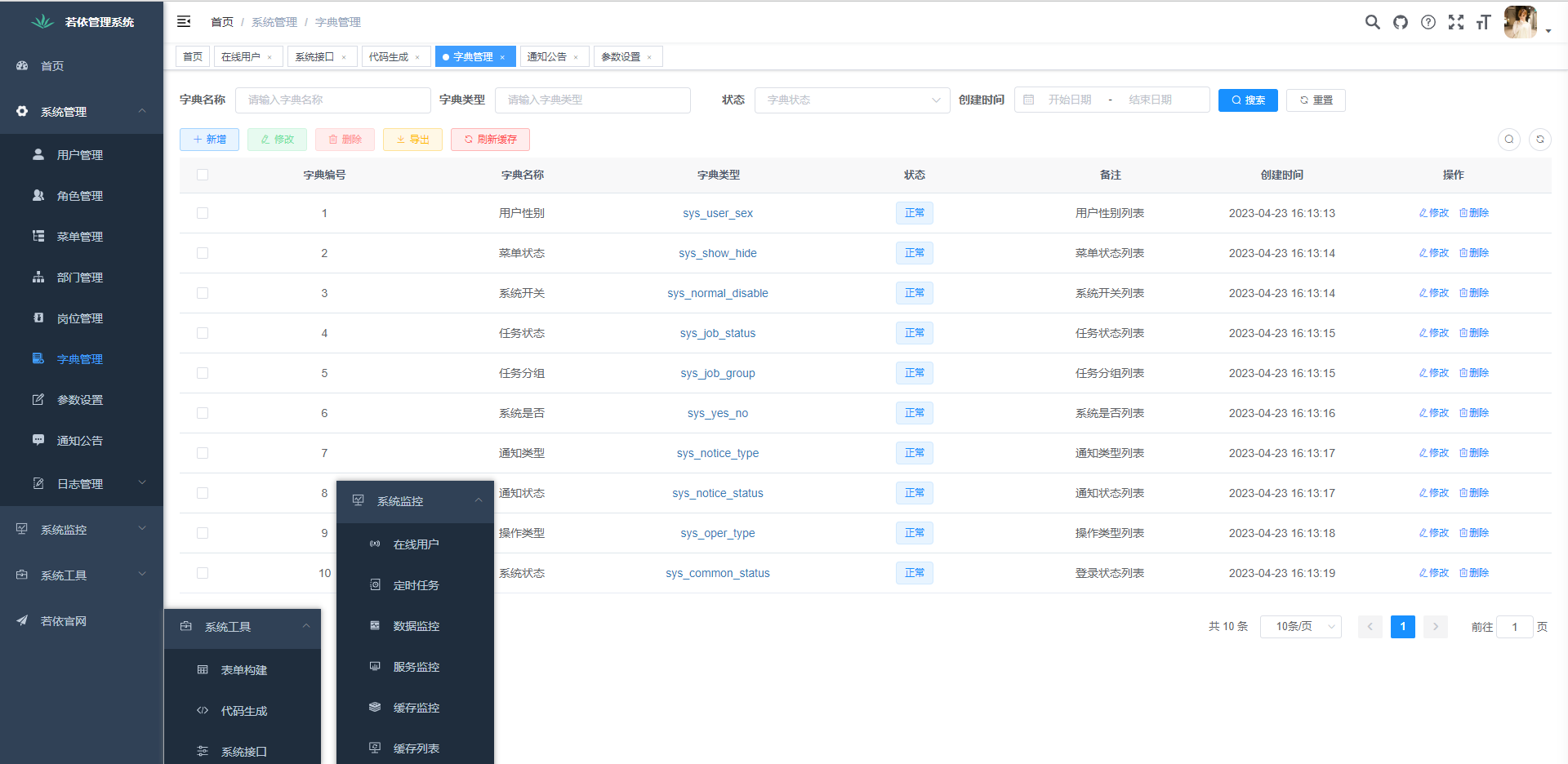 2.1 通用/权限/后台:Ruoyi/若依 【推荐(重型)】♥♥♥♥♥