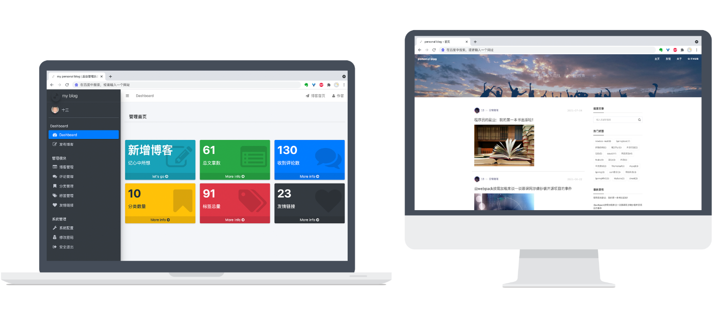 My Blog 是由 SpringBoot + Mybatis + Thymeleaf 等技术实现的 Java 博客系统,页面美观、功能齐全、部署简单及完善的代码,一定会给使用者无与伦比的体验