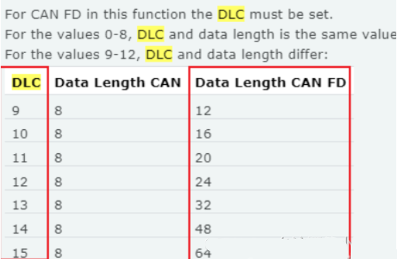 对于CAN-FD而言,Data Length的长度最大为64个字节,故有了以下映射表(来源: 蚂蚁小兵博客)