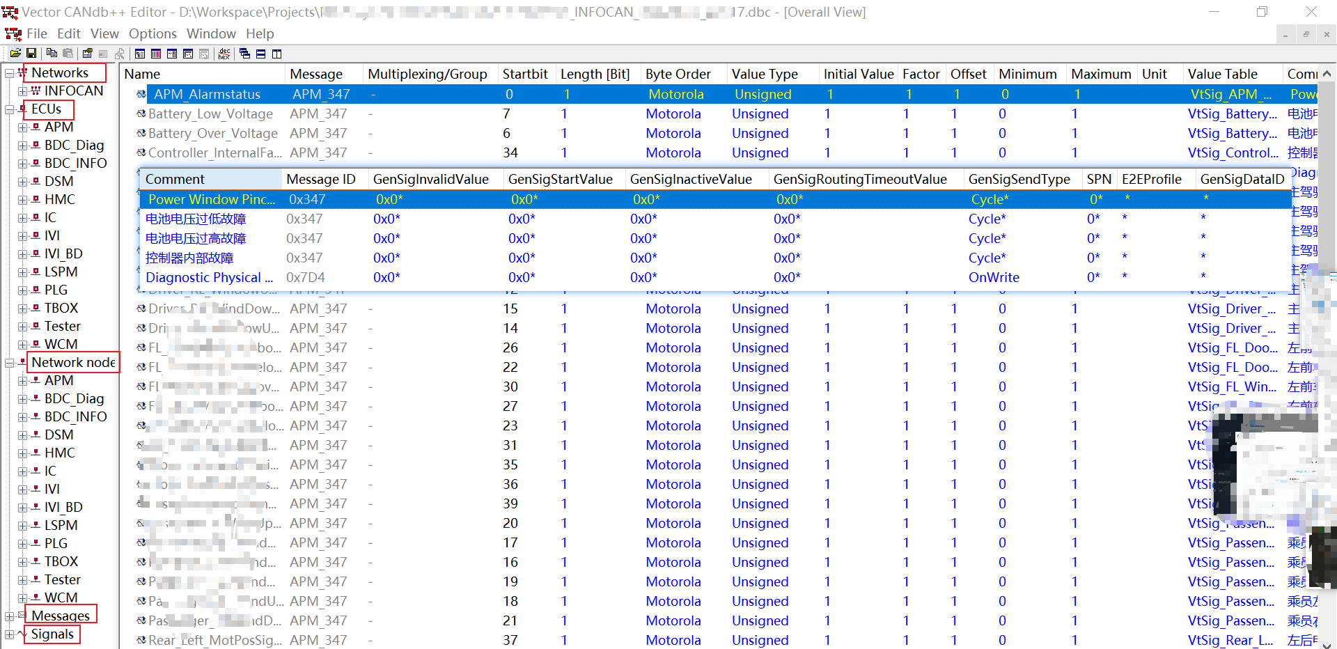 Q: DBC文件的编辑与可视化工具? Vector CANdb++ Editor