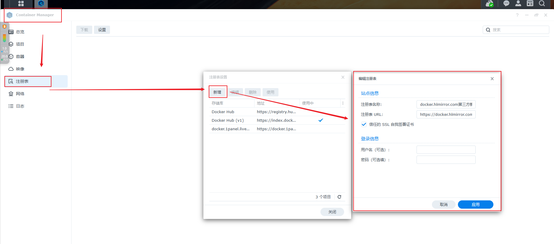 Container Manager-注册表-新增