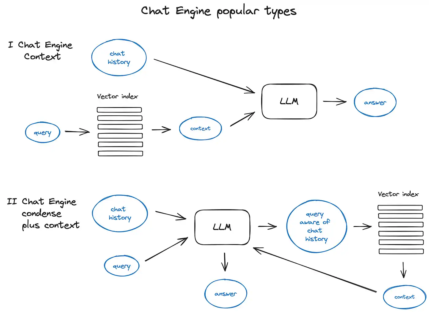 还有像 ReAct 智能体 这样的其他聊天引擎类型,但接下来将直接跳转到第 7 节,讨论智能体本身。