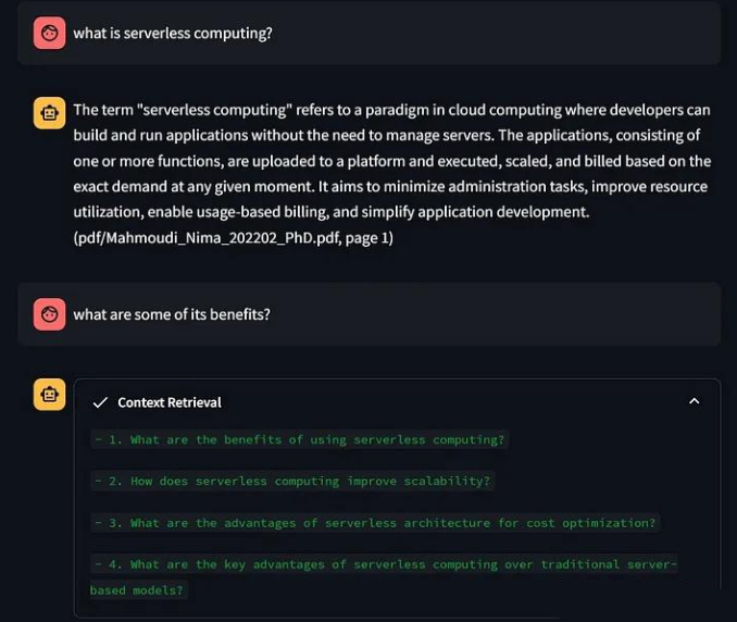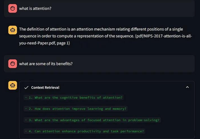 这是支持后续问题、代词指代或与上一个对话上下文相关的任意用户命令所必需的。它是通过查询压缩技术解决的,将聊天上下文与用户查询一起考虑在内。
