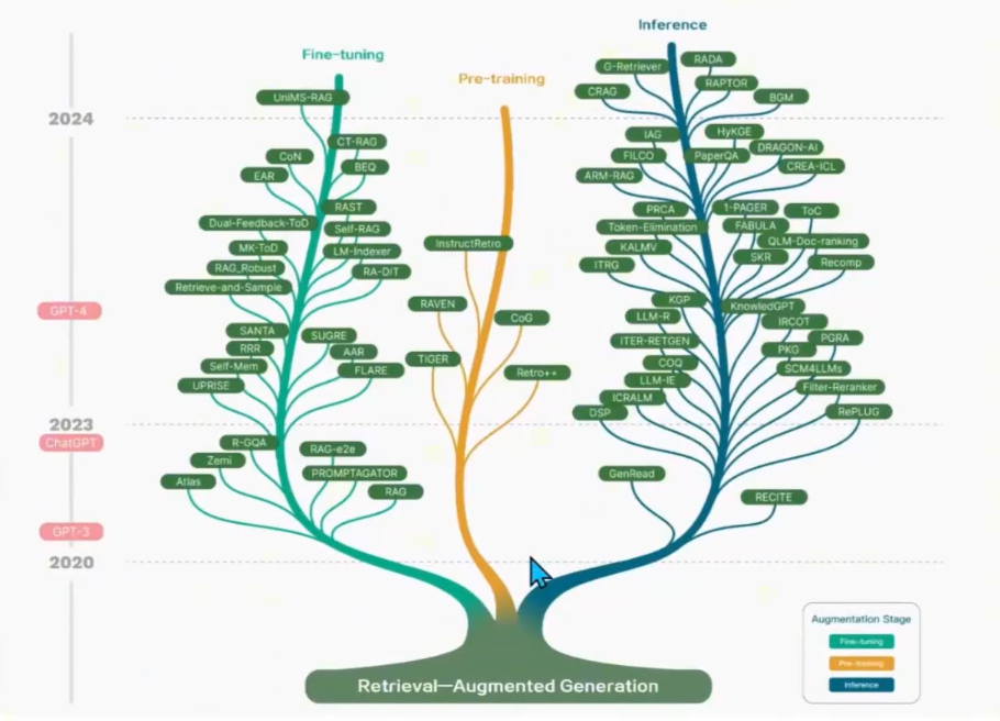 - 2020年左右就出现了RAG技术,代表了LLM领域内增强生成任务的一种新范式。
