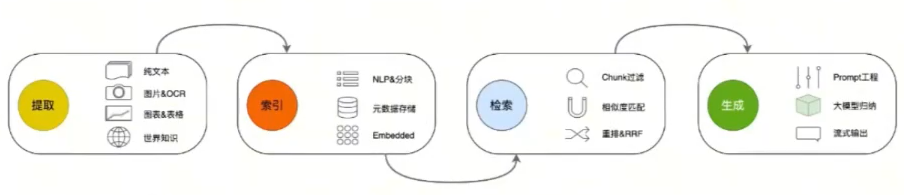主要包括:数据提取、文本分割、向量化、数据入库等环节。