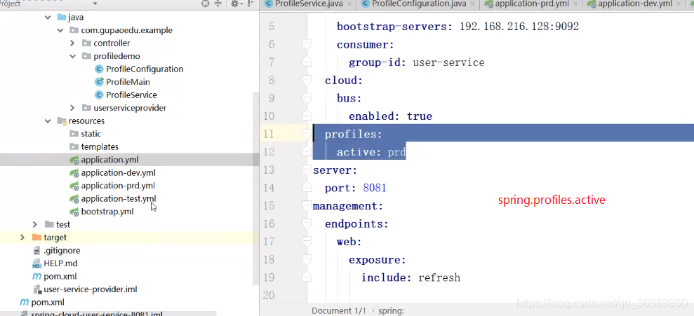 - 在ProfileConfiguraiton配置类的各个bean上,加上
