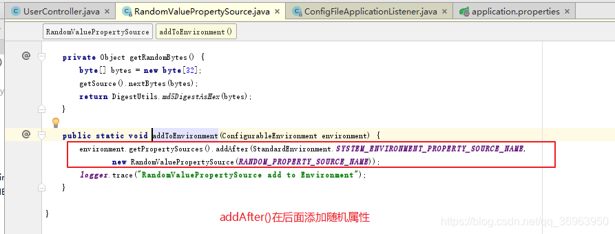 进入到addToEnvironment()方法,这里的addAfter就是在后面添加随机属性。