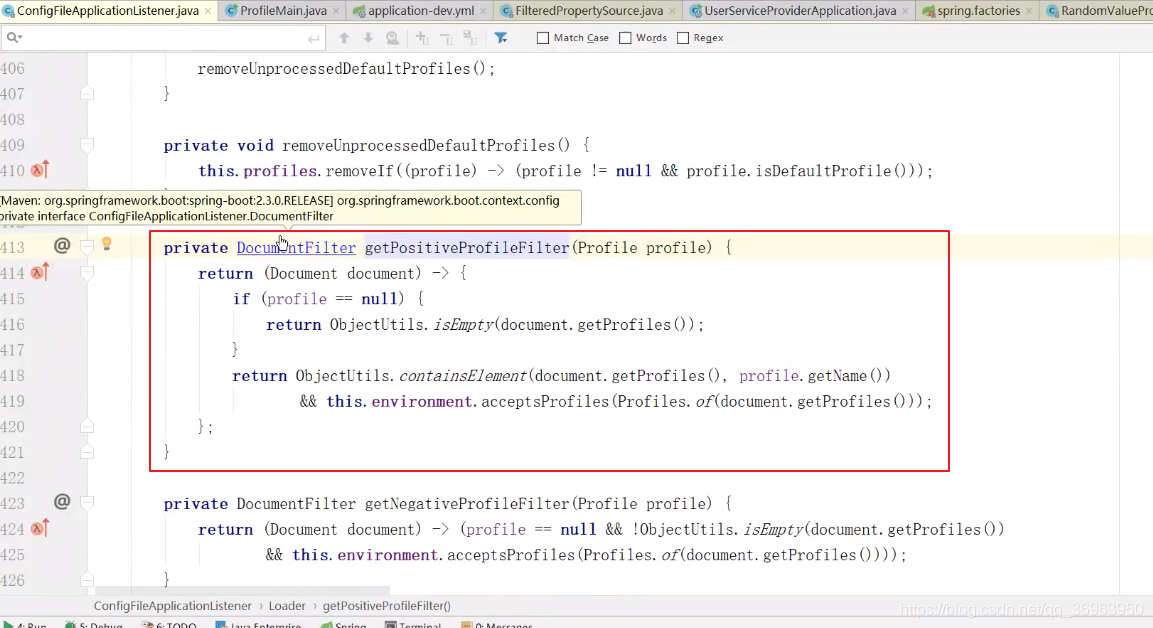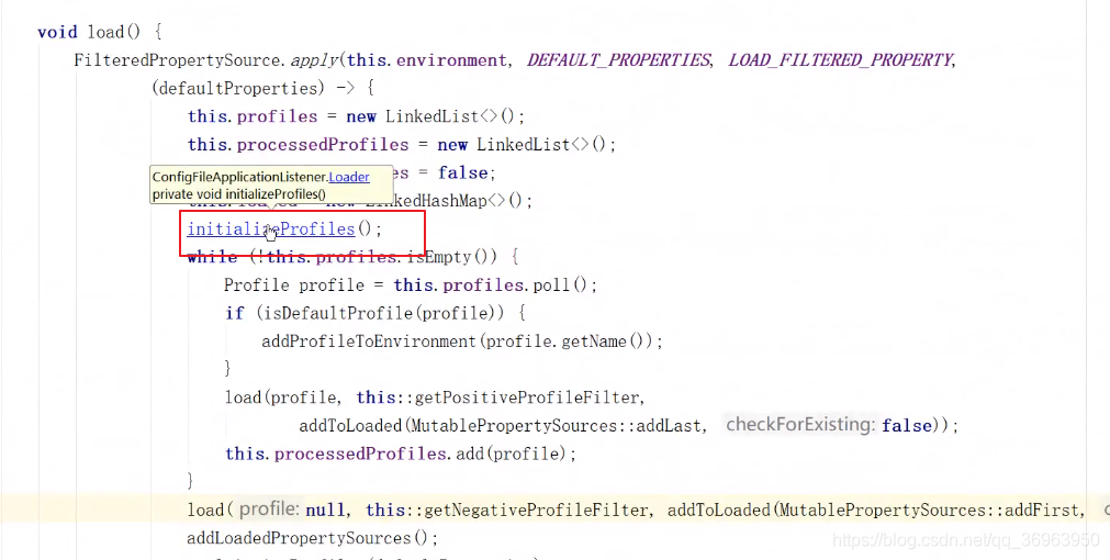 进入到initializeProfiles方法,该方法初始化profiles属性,逻辑如下: