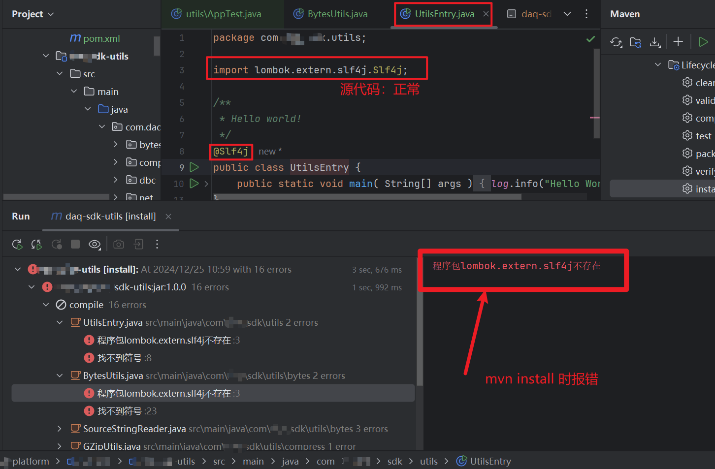 maven install时,报:"找不到符号"