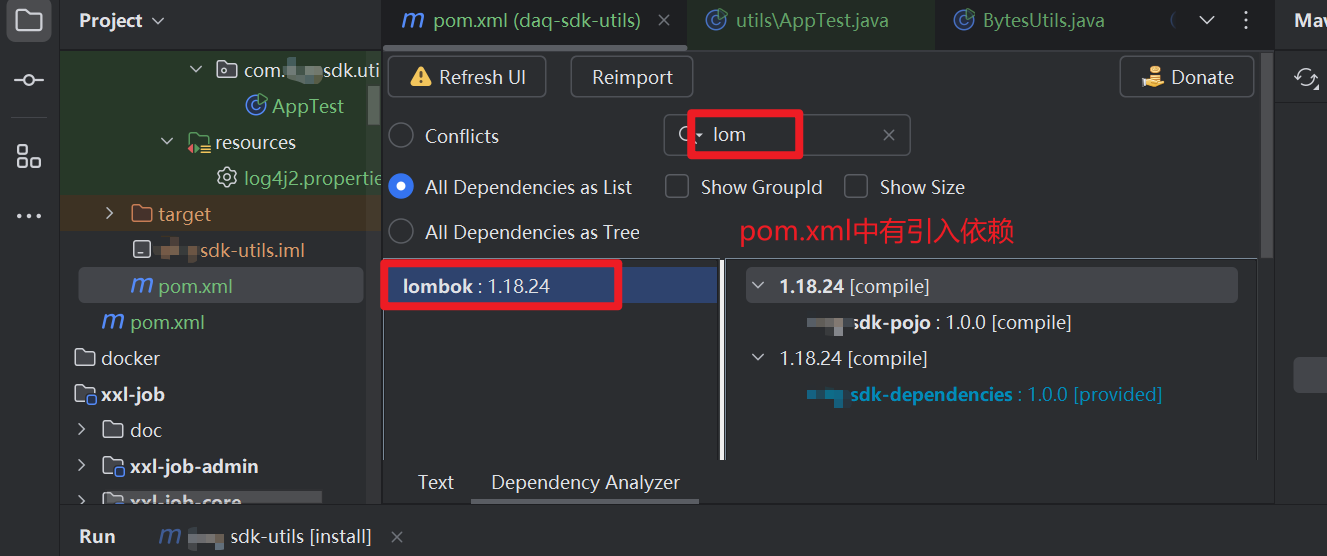 mvn install该工程,- 再在本工程中maven重新导入(reimport)该工程,