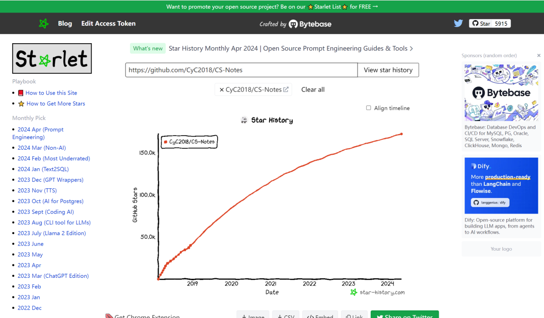 Star History谷歌浏览器插件,这样当点进具体项目时就可以通过右上角的插件快速浏览该项目的Star增长曲线。
