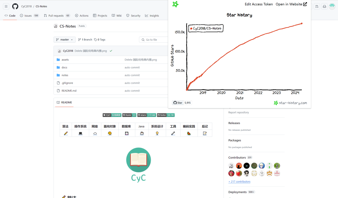 如查看java领域排行第一的CS-Notes项目,注意在搜索框中不要输入.git后缀,不然显示的就只有一个点。