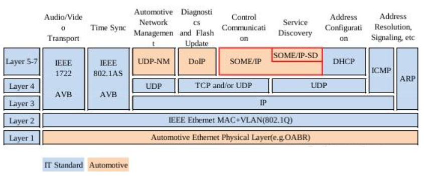 图: SOME/IP 与车载以太网协议栈关系