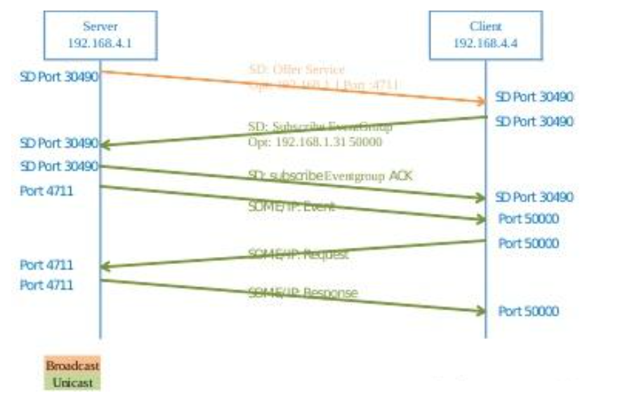SOME/IP-SD协议实现的,主要是为了实现在车载以太网中告知客户端当前服务实例的可用性及访问方式,可通过Find Service和Offer Service来实现。 -