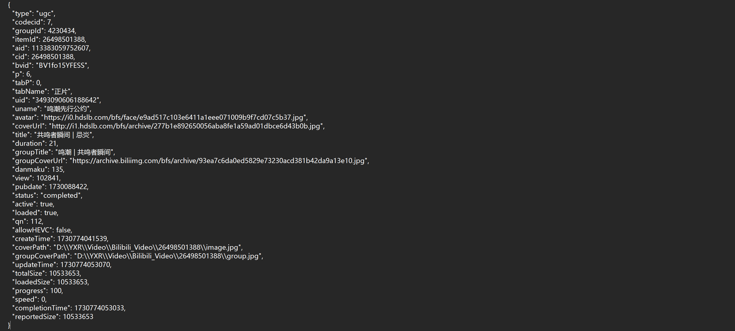 videoInfo文件:包含该视频的基本元数据,如视频标题、描述、作者信息、上传时间、清晰度选项等。