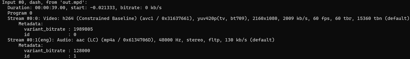 这会将 input.mp4 分割为2秒的 M4S 片段,并生成一个 out.mpd 的 DASH 清单文件,便于播放器按需加载各个片段。