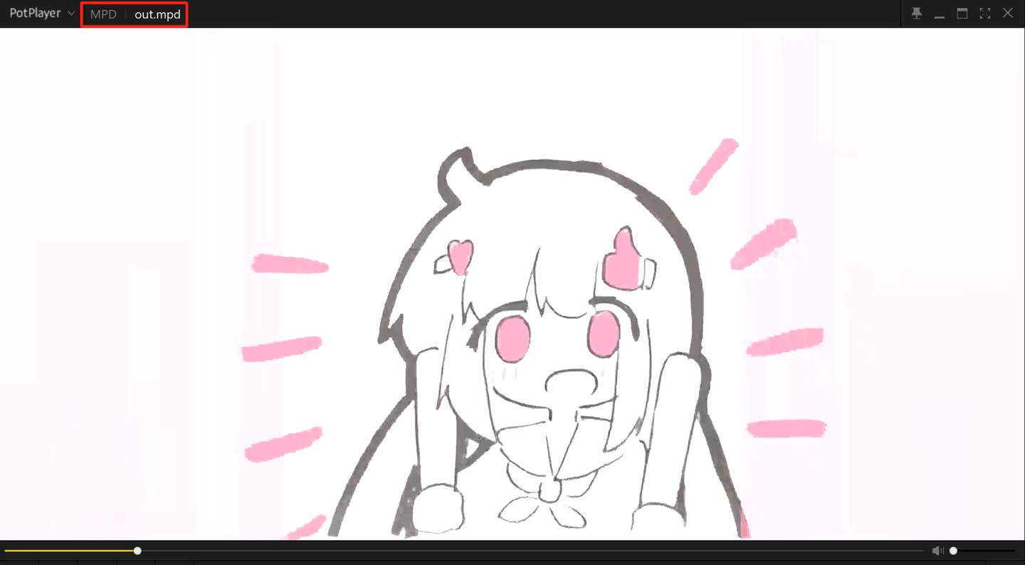 接下来我们用播放软件 PotPlayer 或 VLC 打开 out.mpd 清单文件即可加载各段内容完整播放: